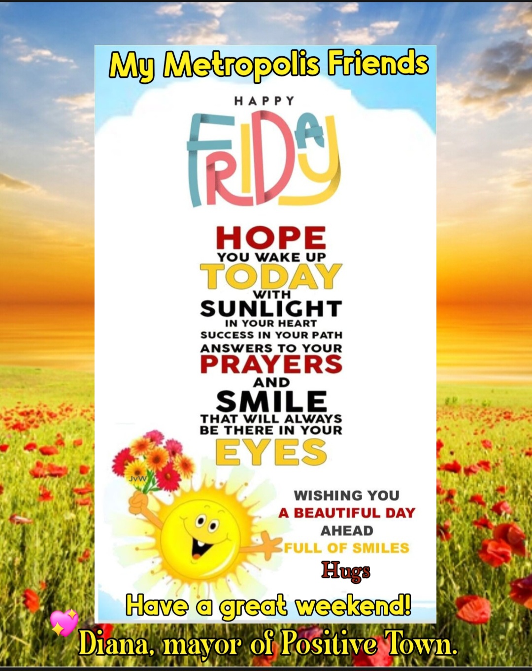 WITH SUNLIGHT IN YOUR HEART SUCCESS IN YOUR PATH ANSWERS TO YOUR PRAYERS AND SMILE THAT WILL ALWAYS BE THERE IN YOUR